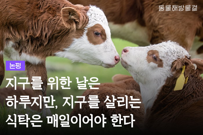 ○ 2025년 4월 22일(화) - 극심한 기후와 생태, 식량의 위기가 가속화되는 가운데 55번째 지구의 날을 맞았다. 지구 곳곳에서 반복되는 산불과 홍수, 폭염은 일상이 되었고, 야생동물은 1970년에 비해 70% 이상 줄어들었으며, 많은 국가의 식량자급률과 식량안보지수는 기후변화, 전쟁 등과 맞물려 위험수준으로 치닫고 있다. '넷제로(Net-Zero)'나 'RE100'은 상식이 되었지만, 우리는 육식과 축산업, 기후생태식량위기의 상관관계를 말하는 데는 여전히 주저한다. 그러나 식탁을 바꾸지 않고는 지구를 살릴 수 없다는 사실은, 불편하지만 피할 수 없는 진실이다.