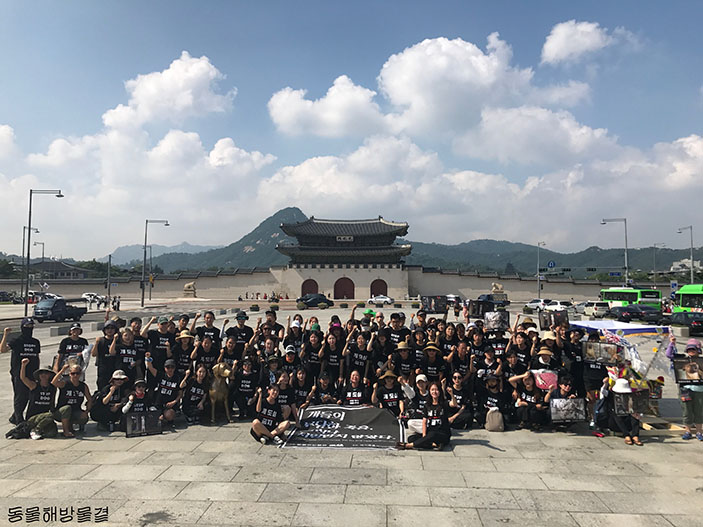 지난 7월 17일 초복, 불볕같은 더위에도 백명이 넘는 분들이 [2018 황금개의 해 복날추모행동]에 나와주셨습니다. 개 식용을 둘러싼 법적 모순을 30년 넘게 방기한 정부를 규탄하고, 부당하게 죽어간 개들의 장례를 치뤄주고자 했던 모두의 행동과 목소리는 청와대, 국회, 그리고 언론에 울려 퍼졌습니다. 방송 3사 뉴스는 물론, 190개가 넘는 관련 기사가 보도되었습니다. 이어진 꽃상여 장례행진애서는 [개 도살 금지를 촉구하는 세계인의 요구 서한]을 청와대에 전달하였고, 답변을 기다리고 있습니다.