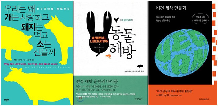 1) <우리는 왜 개는 사랑하고 돼지는 먹고 소는 신을까> 멜라니 조이 2) <동물 해방> 피터 싱어 3) <비건 세상 만들기> 토바이어스 리나르트