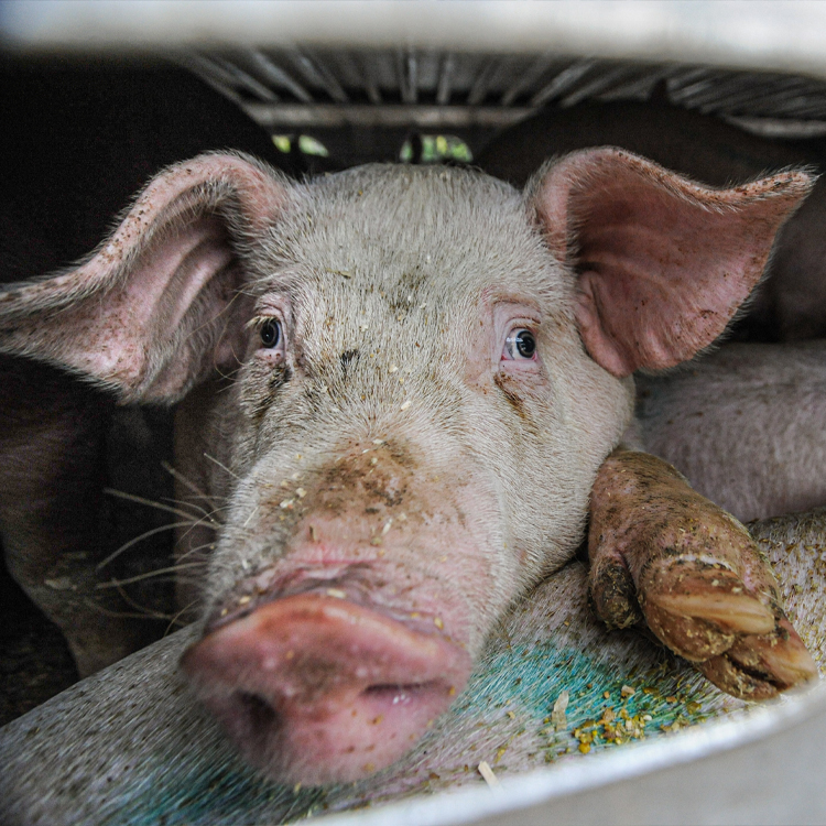 모돈은 출산 기계가 아닙니다. 모돈도 강간과 출산의 고통을 겪고, 좁은 감금틀 안에서 무력함을 느끼고 스트레스를 받습니다. ‘모돈’이라는 이름이 아닌, 각자의 자유로운 삶을 누리는 돼지를 위해 여러분의 탈육식이 절실합니다. 바로 지금부터, 동물해방물결과 탈육식을 약속해주세요!