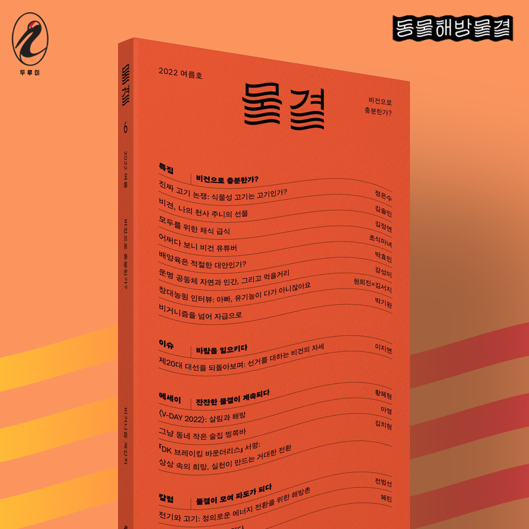 비거니즘 계간지 『물결 2022 여름호: 비건으로 충분한가?』는 온라인 및 오프라인 서점에서 구입할 수 있습니다.