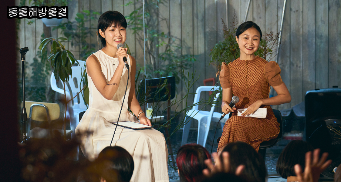 이후 7시부터 본격적인 파티가 시작되었습니다. 이슬아 작가와 현희진 시인의 ‘비건과 로맨스’, 양다솔 작가의 ‘비건 공개 라디오’부터 비건 뮤지션 슬릭과 김사월의 멋진 미니 콘서트까지!