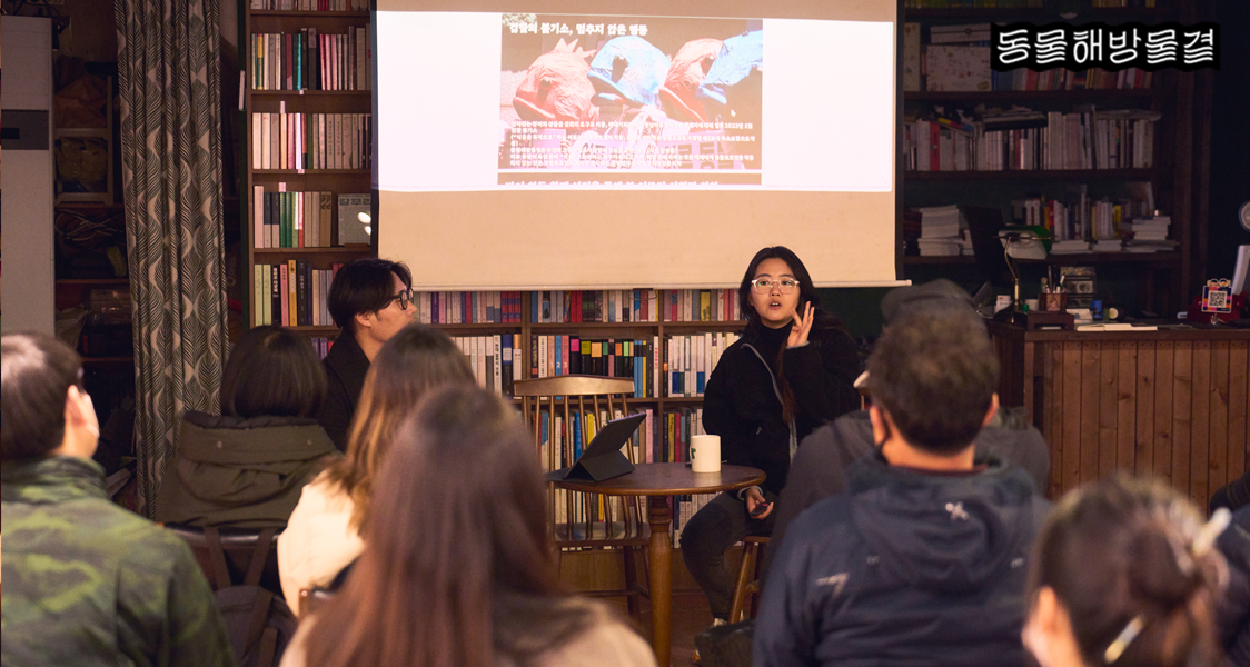 지난 2월 26일 일요일, 책방 풀무질에서 핫핑크돌핀스 바당구조대가 제주 전역에서 낚시꾼의 흔적을 엮은 『낚시꾼 흔적 도감』 북토크가 진행됐습니다. 동물해방물결도 함께 참여하여 이야기를 나누었습니다.