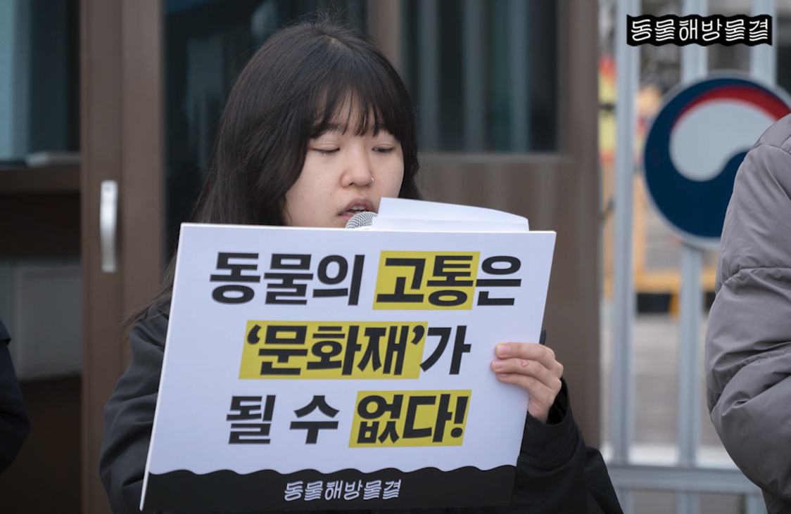 3월 12일 오전 11시 30분, 동물해방물결은 동료 시민단체, 녹색정의당과 함께 광화문 정부서울청사 앞에서 공동 기자회견을 열고, 문화재청의 소싸움 국가무형유산 지정조사 중단을 촉구했습니다.