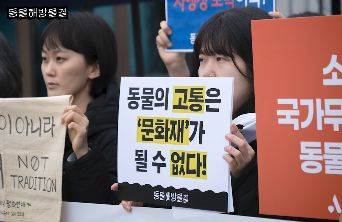 시대는 변화하고 있습니다. 인간의 권리만을 중요시하던 사회에서 동물의 고통을 최소화하고 그들의 권리를 보장하기 위한 노력들이 세계 곳곳에서 이어지고 있습니다. 문화재청은 이러한 시대적 흐름을 역행하지 말고, 소싸움에 대한 국가무형유산 지정가치 조사를 즉각 중단해야 합니다.