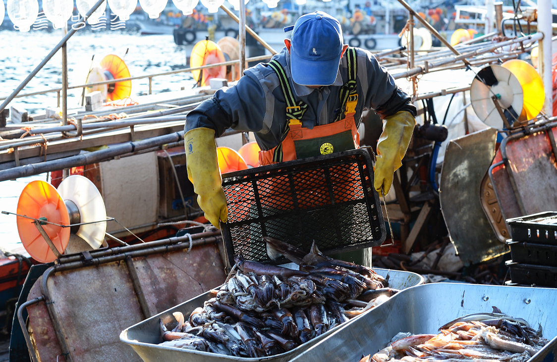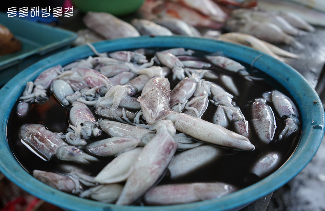 한때 한국을 대표하던 수출 어종 오징어는 1996년 국내 연근해 어획량에 비해 2023년 어획량이 10분의 1 수준으로 줄어들었습니다. 이에 멸종을 우려해 어린 오징어 어획을 불법으로 지정했음 불구하고, ‘총알 오징어’라는 마케팅 용어로 둔갑해 한입 크기의 먹기 좋은 오징어라며 홍보하고 있습니다.