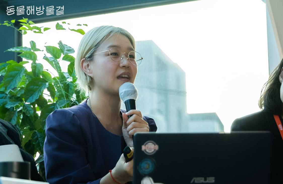 토론에는 세 분의 게스트가 각자 준비한 주제로 발제를 진행하고, 내용과 관련하여 관객들과 이야기를 나누었는데요. 우선, 오창룡 부경대 정치외교학과 교수는 네덜란드 사례를 중심으로 동물당의 역사 및 성과를 소개하고, 현재 세계 여러 국가에서 진행되고 있는 동물 관련 정책 동향과 보금자리 조성 사례를 짚어주었습니다. 이어서 환경과생명문화재단 이다 감사를 맡고 있는 이지은 변호사가 한국의 동물 관련 법령들을 분석하며 국내에서 보금자리 조례 제정이 법적으로 가능할지에 대해 설명했고요.