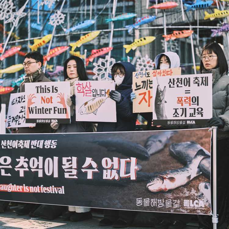 생명의 처절한 고통을 담보로 얻는 경제적 이익은 결코 지속 가능하지 않으며, 아이들에게 폭력을 가르치고 생명 경시를 학습시키는 지역 행사에는 미래가 없습니다. 파괴가 아닌 보전을, 착취가 아닌 존중을 원칙으로, 화천 산천어축제가 윤리적이고 생태적인 겨울 축제로 거듭나기를 바랍니다. 동물해방물결과 함께 화천 산천어축제의 변화를 요구해 주세요!